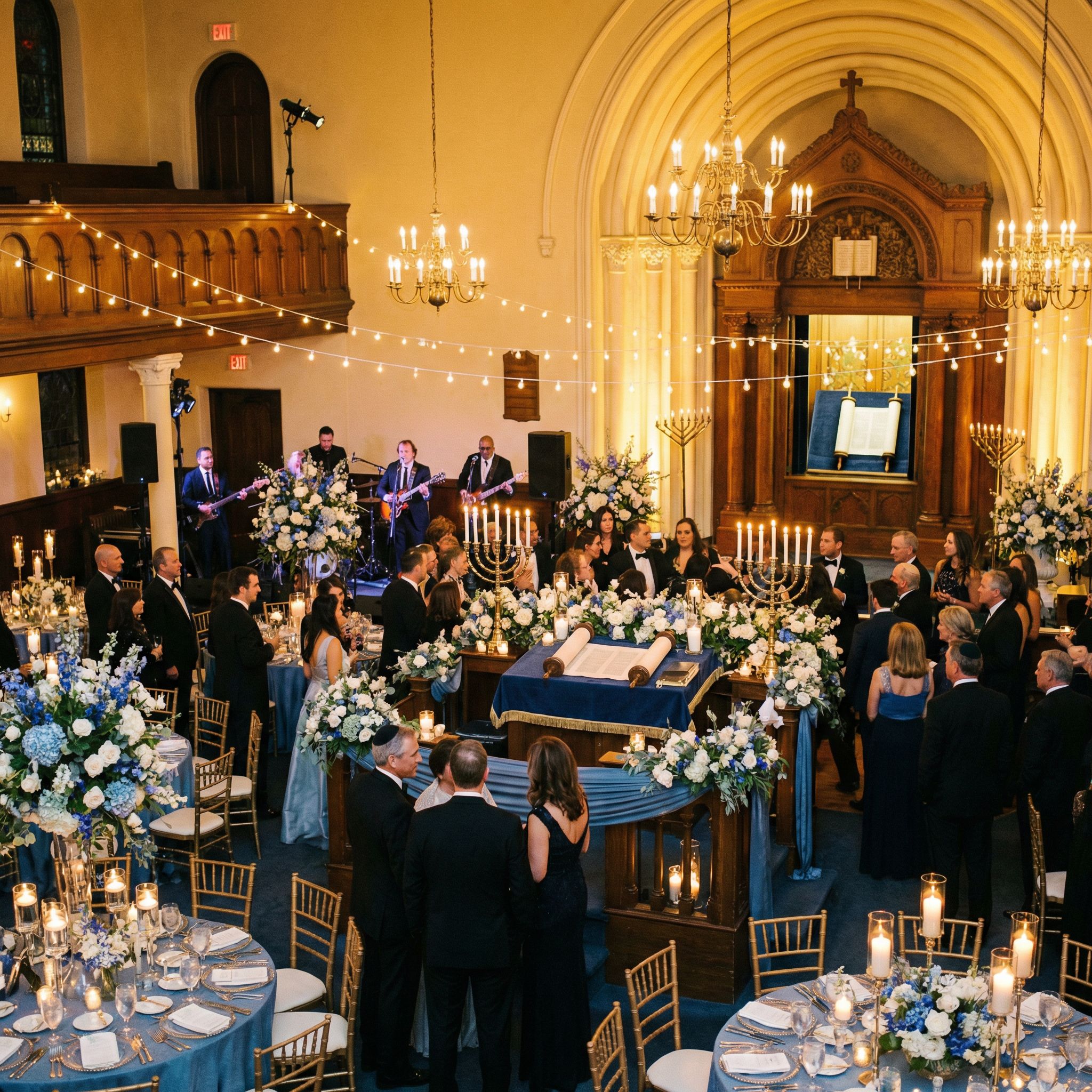 The synagogue service is the spiritual heart of the day. Music here tends to be traditional, Hebrew-language, or instrumental. Many families incorporate liturgical melodies their congregation already knows, but some choose to add a contemporary piece for the processional or recessional.