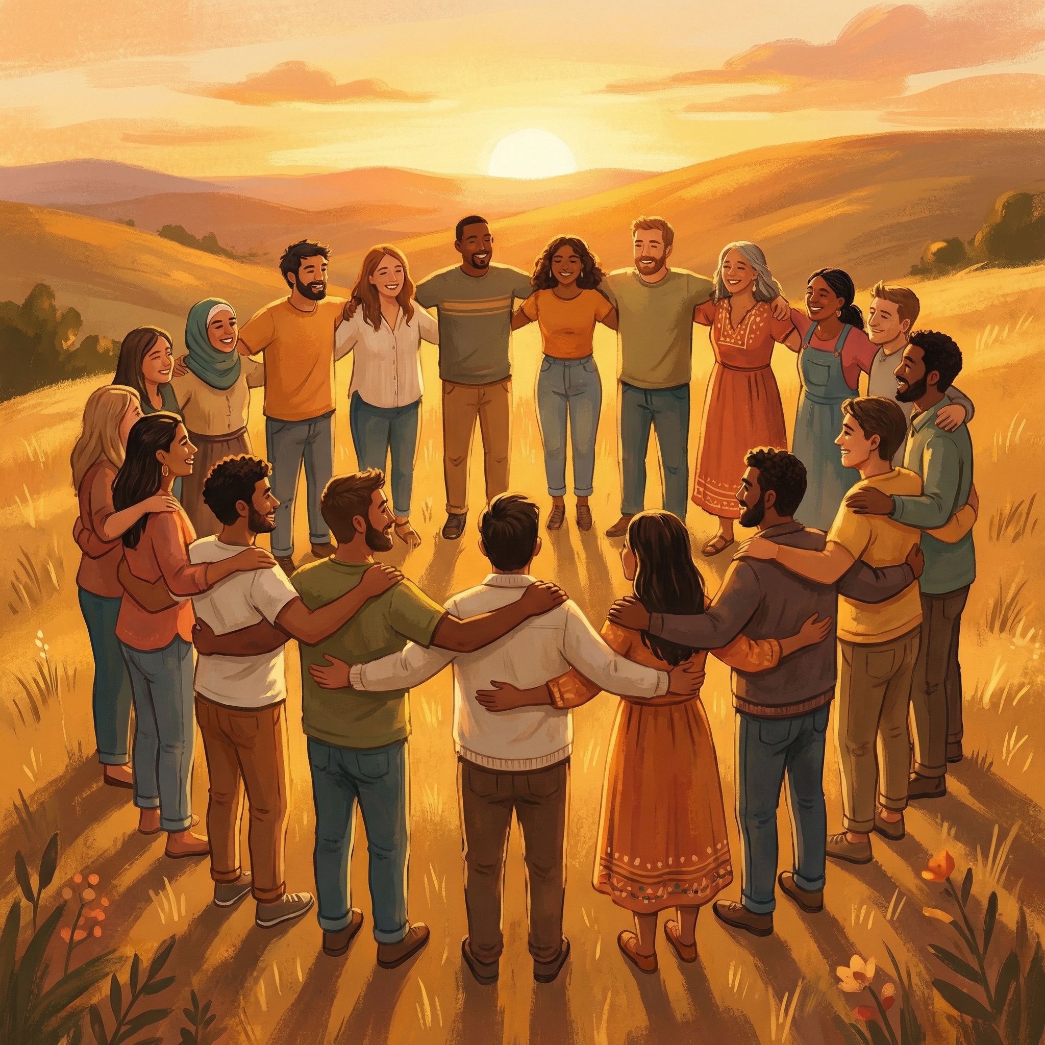 You don't need to write lyrics or know anything about music. The process is a simple conversation where you share the details that matter: who your group is, what you've been through together, and the vibe you want. The platform handles the rest.