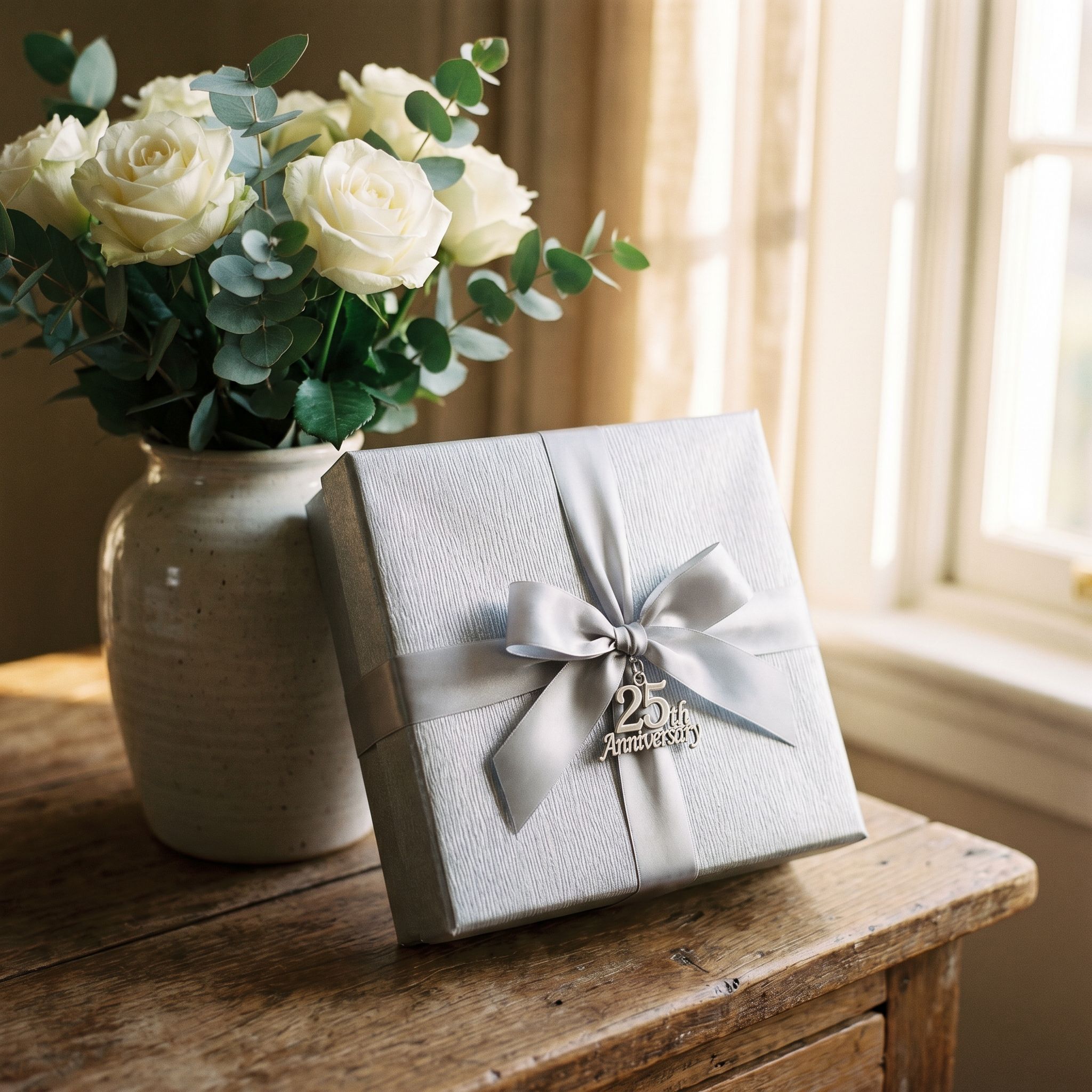 The traditional 25th anniversary gift is silver, which symbolizes the brilliance and strength of a lasting marriage. Many people incorporate silver into jewelry, home decor, or keepsakes, but modern interpretations welcome any meaningful gift.