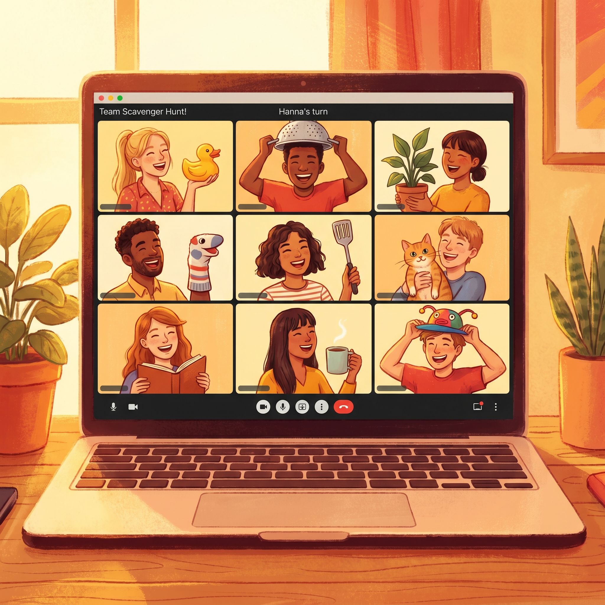 - 01Virtual Scavenger Hunt: Give the team 3 minutes to find a specific item in their home (weirdest mug, oldest book, something purple). Share and vote on favorites.